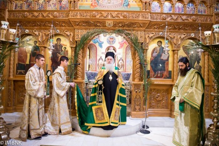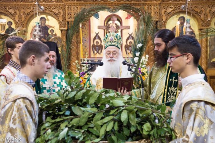 Στο τέλος της Θείας Λειτουργίας και μετά την καθιερωμένη τελετή της Κυριακής των Βαϊων τέλεσε την εις αναγνώστη χειροθεσία δύο νέων ιεροπαίδων.