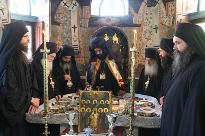 Μετά το πέρας της Θείας Λειτουργίας ακολούθησε Τράπεζα στο τέλος της οποίας ο Γέροντας Εφραίμ ευχαρίστησε τον προσκεκλημένο Μητροπολίτη Αυστρίας για την παρουσία του, καθώς επίσης και όλους τους άλλους παρευρισκομένους που τίμησαν την εορτή των Βατοπαιδινών Αγίων.