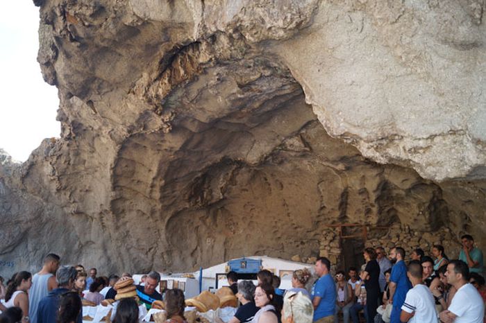 Η Παναγία η Κακαβιώτισσα, μετόχι της Μονής Μεγίστης Λαύρας. Αντί για στέγη έχει τα βράχια