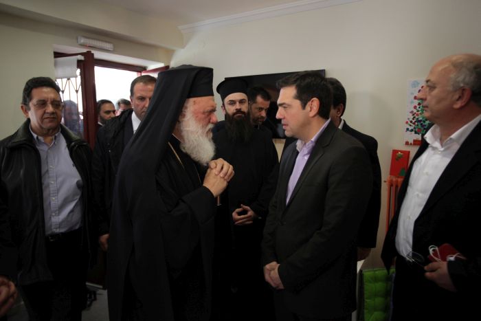 Την ευχή να μην γίνονται συσσίτια από την Εκκλησία κ.α. δομές σε δυο –τρία χρόνια από σήμερα, διατύπωσε ο Αρχιεπίσκοπος Ιερώνυμος, υποδεχόμενος τον Αλέξη Τσίπρα στο «Δημήτρειο» Κέντρο, στο οποίο βρίσκουν καθημερινά τροφή και δημιουργική απασχόληση περισσότερα από 60 παιδιά.