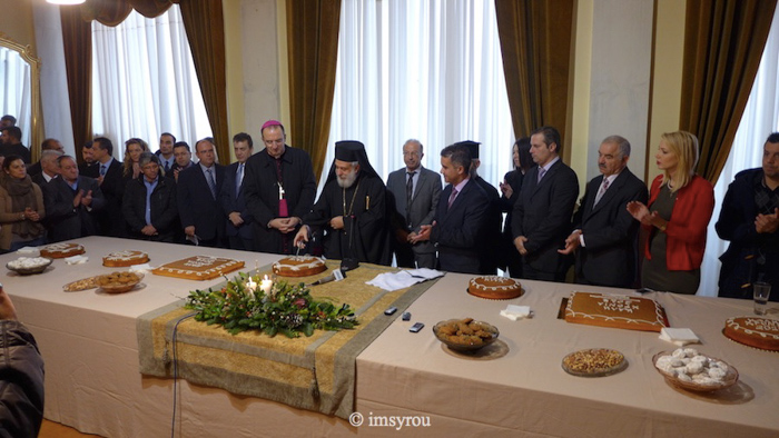 Όπως αναφέρει η ανακοίνωση της Μητρόπολης: «Παρουσία του προς τούτο προσκεκλημένου Υπουργού Εργασίας και Κοινωνικών Ασφαλίσεων κ. Ιωάννη Βρούτση, του Επισκόπου των ΡΚαθολικών Σύρου κ. Πέτρου, του Αντιπεριφερειάρχη Κυκλάδων κ. Γ. Λεονταρίτη, του Δημάρχου Σύρου-Ερμούπολης κ. Γ. Μαραγκού, της Προέδρου του Δημοτικού Συμβουλίου, των Αντιδημάρχων και Μελών του Δημοτικού Συμβουλίου, εκπροσώπων του Στρατού και των Σωμάτων Ασφαλείας, εκπροσώπων τοπικών Φορέων, Συλλόγων και Οργανώσεων, ο Σεβασμιώτατος κ. Δωρόθεος Β’ ευλόγησε σήμερα το μεσημέρι την κοπή της Αγιοβασιλειόπιττας του Δήμου Σύρου- Ερμούπολης και αντάλλαξε ευχές με το Δήμαρχο κ. Γ. Μαραγκό για το νέο έτος.
