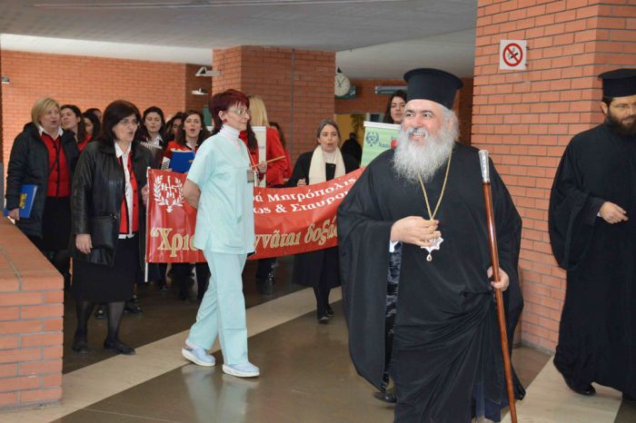 Το οδοιπορικό ξεκίνησε από το Γενικό Νοσοκομείο Παπαγεωργίου. Εκεί, ο Σεβασμιώτατος μοίρασε δώρα στους ασθενείς, αντάλλαξε ευχές με το ιατρικό και νοσηλευτικό προσωπικό, ενώ η χορωδία έψαλλε παραδοσιακά κάλαντα και οι συνοδοί παρακολουθούσαν με υγρά μάτια και έμπλεοι αισθημάτων ευγνωμοσύνης.