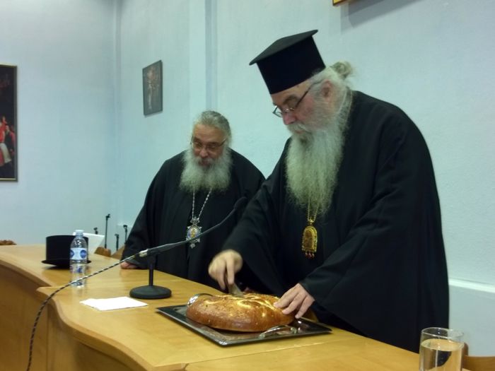Μετά το πέρας της εισηγήσεως ακολούθησε συζήτηση με το ακροατήριο και ο Σεβασμιώτατος Μητροπολίτης Καστορίας ευλόγησε την Βασιλόπιτα της Συνάξεως.
