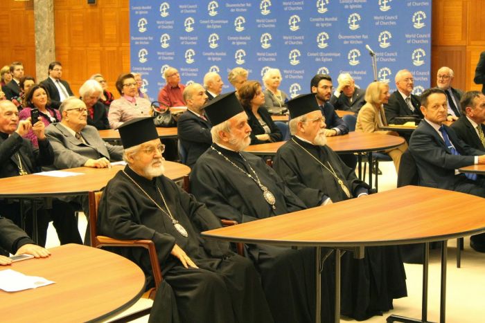 Στην τελετή παρέστησαν, ο Μητροπολίτης Ελβετίας κ. Ιερεμίας επικεφαλής του Ιερού Κλήρου της Μητροπόλεως Ελβετίας και των στελεχών του εν Σαμπεζύ Ορθοδόξου Κέντρου του Οικουμενικού Πατριαρχείου, ο Γενικός Πρόξενος της Ελλάδος στη Γενεύη κ. Άγγελος Υψηλάντης, ο Νούντσιος της Αγίας Έδρας στον ΟΗΕ Mgr Silvano Tomasi, Οφφικιάλοι του Οικουμενικού Θρόνου, επιτελικά στελέχη του ΠΣΕ, Πανεπιστημιακοί, μέλη της Ελληνορθοδόξου και της Γαλλοφώνου Ενορίας Γενεύης, όπως και πολλοί Ελβετοί, φίλοι του Πατριαρχείου.