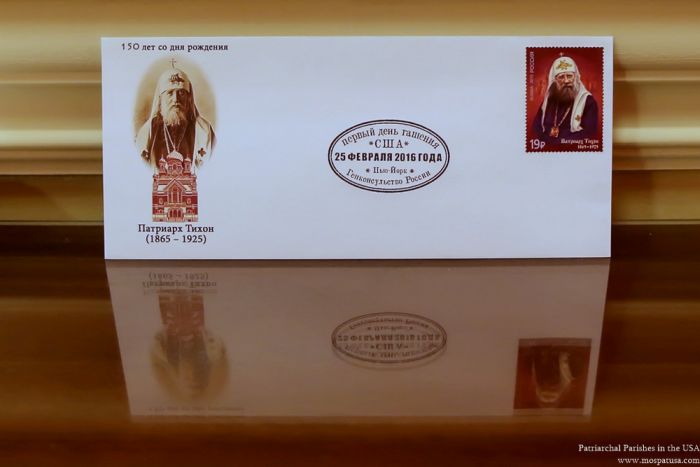 Παρουσίαση του γραμματοσήμου με την εικόνα του Αγίου Τύχωνος, Πατριάρχου Μόσχας και Πασών των Ρωσσιών πραγματοποίησαν ο Γενικός Πρόξενος κ. Ι. Γκολουμπόφσκυ και ο Επίσκοπος Ναρο-Φομίνσκ Ιωάννης, Διευθυντής των παροικιών του Πατριαρχείου Μόσχας στις ΗΠΑ στα πλαίσια της επισήμου δεξιώσεως επί τη εκδόσει στο τέλος του παρελθόντος έτους του σχετικού γραμματοσήμου από την κρατική εταιρεία «Κρατικό έμβλημα» και την ιδιωτική εταιρεία «Γραμματόσημο» για να τιμηθούν τα 150α γενέθλια του Αγίου.