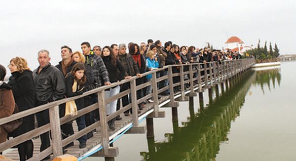 Семь из участников торжества решили окунуться в ледяную воду под аплодисменты присутствующих на церемонии верующих .Эти люди приехали специально на праздник Крещения из г. Комотини , Ксанти , остальные верующие – из разных уголков страны Все они собрались в чудотворной церкви Святого Николая , чтобы с благоговением отпраздновать Святое Богоявление .
