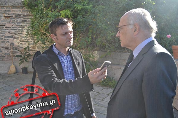 Председатель Государственного совета Греции  Сотирис    Ризос   говорит в любезно предоставленном интервью “Афонской трибуне ”  об Афонском государстве ,  об его   народе  и его  духовной  работе. ”Святой Афон непрерывно совершенствуется , что касается  внешнего сотрудничества  и его жителей . Я имею в виду прекрасное содержание монастырей и рациональное использование денежных средств , откуда бы они не происходили , в основном из доходов сообщества ,  “-  говорит Главный судья административного суда страны , во время своего визита  на Святой  Афон  в минувшие выходные.
