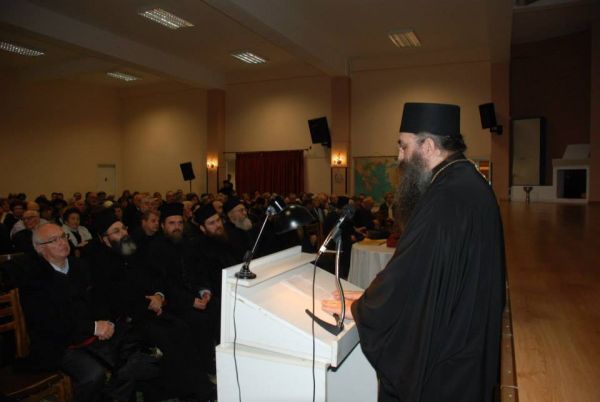 Κεντρικός ομιλητής ήταν ο Πανοσιολογιώτατος Αρχιμ. π. Ιωακείμ Καρεώτης ο οποίος με συγκινητικούς λόγους αναφέρθηκε στον πρόσφατα μεταστάντα μακαριστό καθηγούμενο της Μονής Εσφιγμένου Αρχιμ. Χρυσόστομο (Κατσουλιέρη).