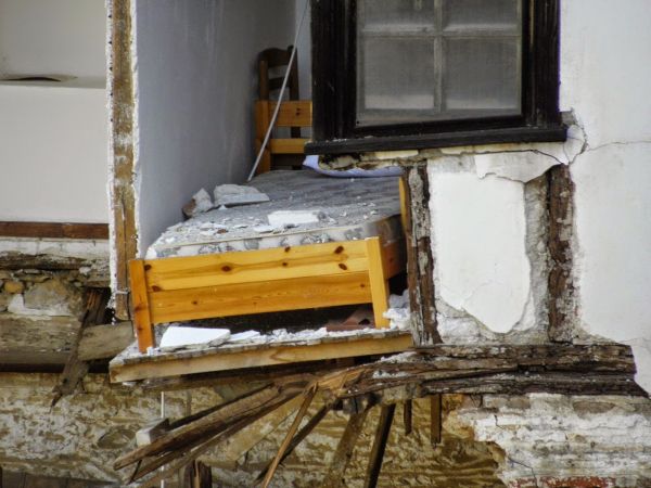 Η δυνατή βροχή παρέσυρε τα θεμέλια του κτιρίου – ξενώνα στη βορειοανατολική πλευρά της Μονής, με αποτέλεσμα να κατεδαφιστεί μέρος του δίχως να φιλοξενεί ευτυχώς κόσμο.