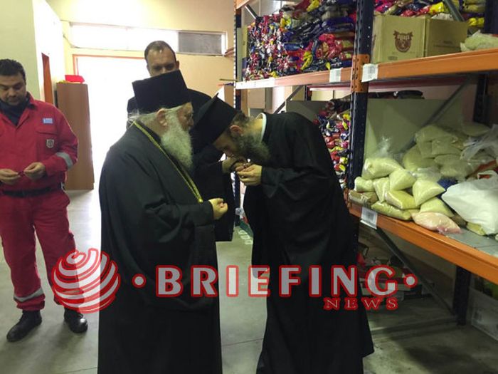 Προηγουμένως ο μητροπολίτης Κατερίνης Πιερίας Κιτρους και Πλαταμώνος κ Γεώργιος μαζι με τον Γέροντα Εφραίμ και την συνοδεία του επισκέφθηκαν και την αντιπεριφερειάρχη Κατερίνης.