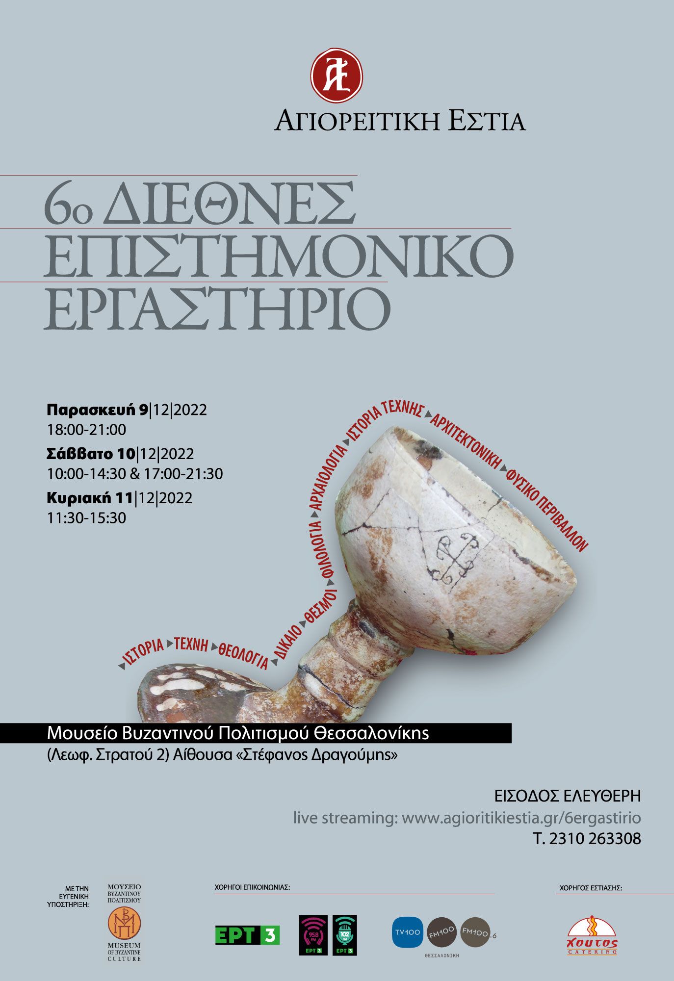 Η Τελετή Έναρξης του Έκτου Εργαστηρίου πραγματοποίησε τη Παρασκευή 9 Δεκεμβρίου 2022 στις 18:00 στην Αίθουσα “Στέφανος Δραγούμης” του Μουσείου Βυζαντινού Πολιτισμού Θεσσαλονίκης.