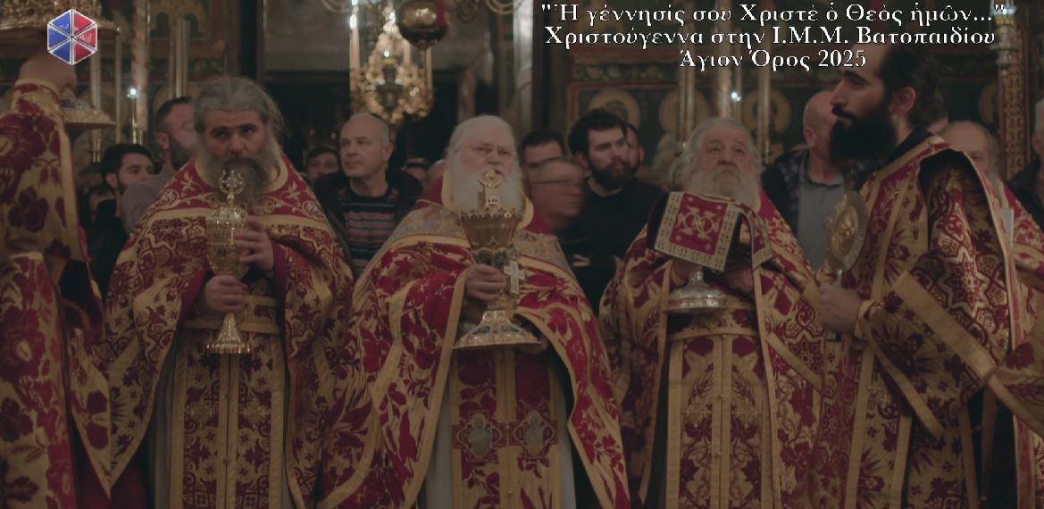 Στα ιερά αναλόγια έψαλλαν Βατοπαιδινοί Πατέρες, αποδίδοντας με βυζαντινή μεγαλοπρέπεια τα τροπάρια της εορτής. Η νύχτα των Χριστουγέννων στο Άγιον Όρος δεν ήταν απλώς μια εορταστική σύναξη, αλλά μια ζωντανή εμπειρία πίστης, που υπενθυμίζει πως η Γέννηση του Χριστού παραμένει το φως που φωτίζει την ανθρώπινη ύπαρξη μέσα στους αιώνες.