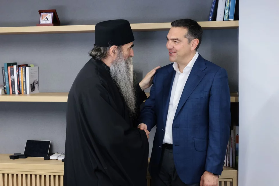 H ΑΓΙΟΡΕΙΤΙΚΗ ΑΝΤΙΠΡΟΣΩΠΕΙΑ ΣΤΟΝ Α.ΤΣΙΠΡΑ! Ο πρόεδρος του ΣΥΡΙΖΑ-Προοδευτική Συμμαχία, Αλέξης Τσίπρας, συναντήθηκε σήμερα με τους εκπροσώπους της Ιεράς Κοινότητας, οι οποίοι συνοδεύουν στην Αθήνα την εικόνα της Παναγίας «Άξιον Εστί», τον διοικητή του Αγίου Όρους, Αθανάσιο Μαρτίνο, και τον υποδιοικητή, Αρίστο Κασμίρογλου.