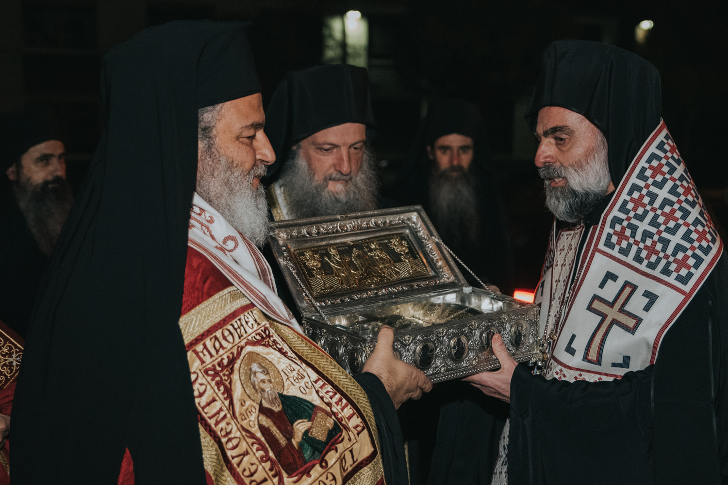 Την Κυριακή, το τίμιο λείψανο θα βρεθεί στον Ιερό Ναό Αγίων Πάντων, όπου θα τελεστεί πανηγυρική Θεία Λειτουργία πριν από την αναχώρησή του για το Άγιον Όρος. Όπως επιβεβαιώθηκε από ενημερωτικές πηγές της Ιεράς Μονής Σίμωνος Πέτρα, το λείψανο θα επιστρέψει στο καθολικό της μονής εντός των επόμενων ημερών.