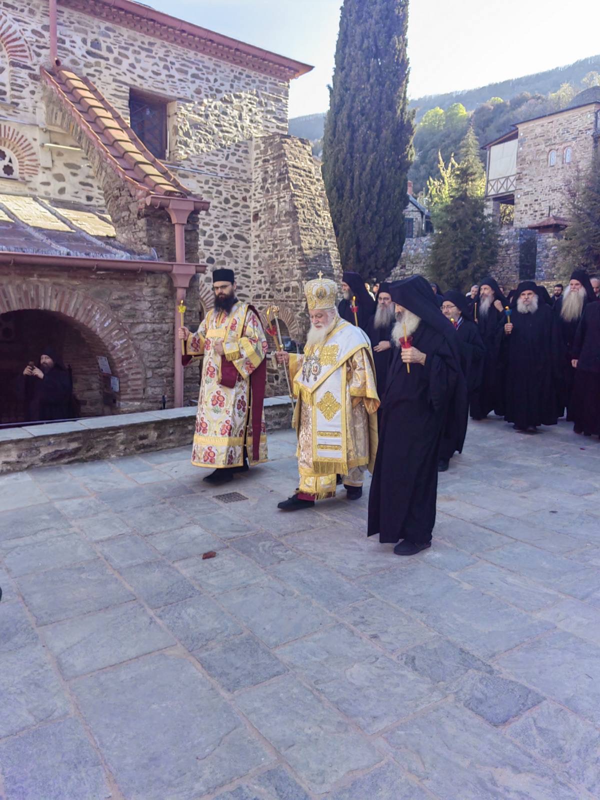 Προεξάρχων της Αναστάσιμης Ακολουθίας ήταν ο Θεοφιλέστατος Επίσκοπος Ρωγών κ. Φιλόθεος, ο οποίος συλλειτούργησε με αγιορείτες ιερομονάχους από Μονές, Κελλιά και Σκήτες του Όρους, ενσαρκώνοντας τη λειτουργική ενότητα της Αθωνικής Πολιτείας.