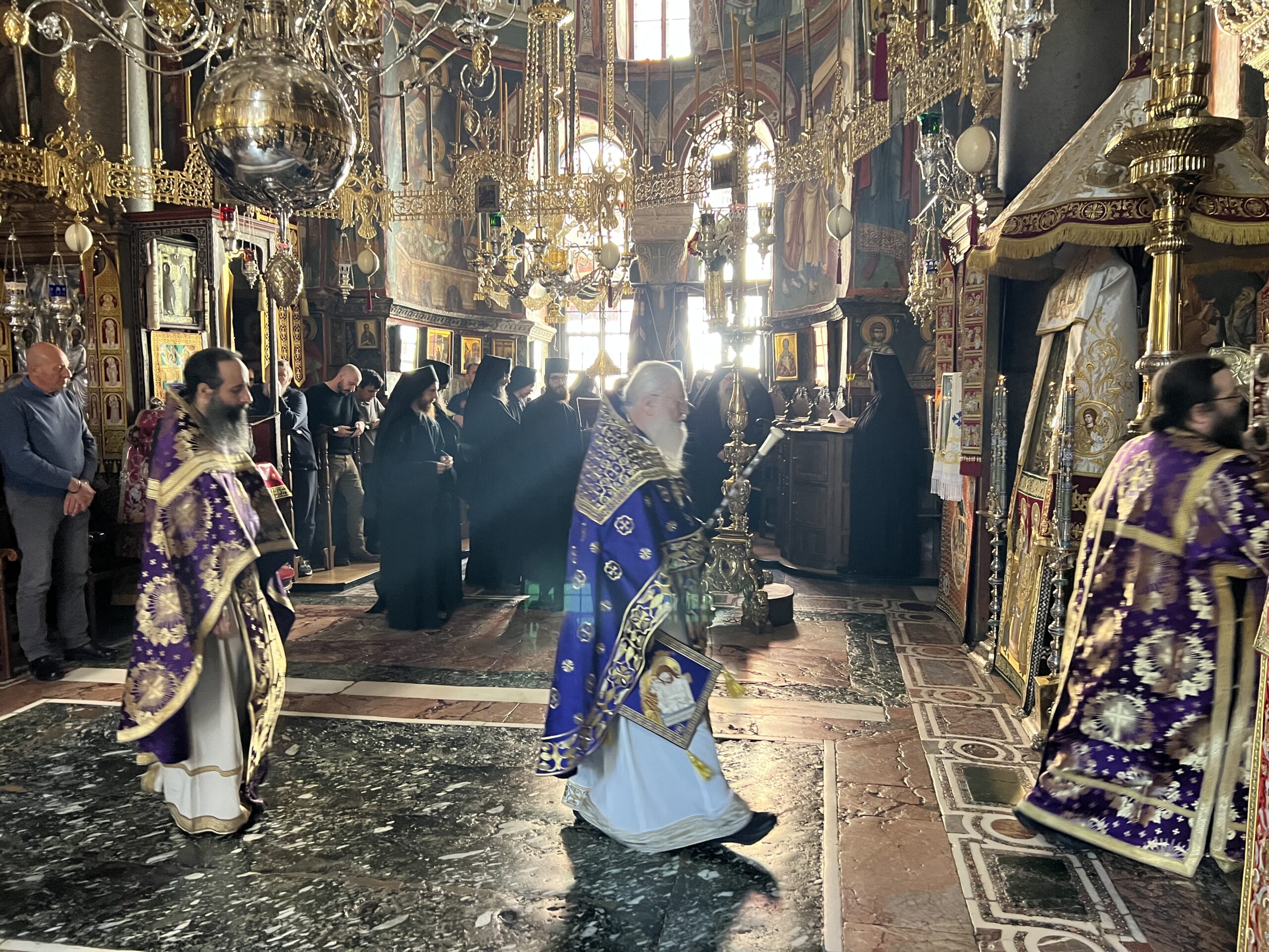 Η Προηγιασμένη Θεία Λειτουργία της Μεγάλης Τετάρτης αποτελεί κορυφαία στιγμή για τους πιστούς, καθώς προετοιμάζει ψυχικά και πνευματικά για τα Πάθη του Κυρίου. Δεκάδες μοναχοί και προσκυνητές συμμετείχαν στην κατανυκτική Ακολουθία, κοινωνώντας των Αχράντων Μυστηρίων μέσα σε ατμόσφαιρα σιωπής και προσευχής.