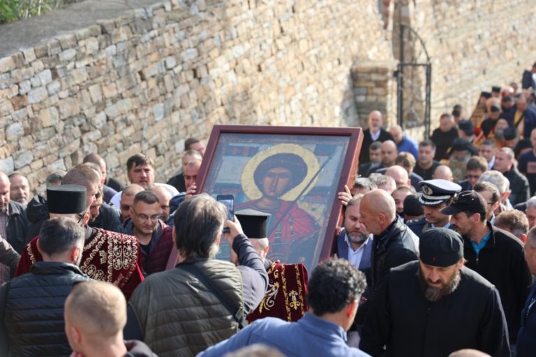 Μετά τη Θεία Λειτουργία, τελέστηκε λιτανεία εντός του μοναστηριακού συγκροτήματος, με τη λιτανεία να προπορεύεται μία από τις θαυματουργές εικόνες του Αγίου Γεωργίου, που φυλάσσονται στη μονή και αποτελούν πηγή παρηγοριάς και θαυμαστών επεμβάσεων.