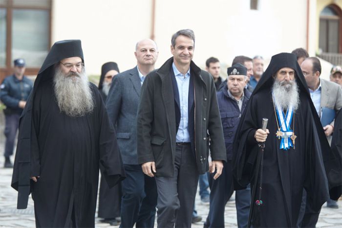 Η Ιερά Κοινότητα του Αγίου Ορους υποδέχθηκε στο Πρωτάτο τον πρόεδρο της Νέας Δημοκρατίας, Κυριάκο Μητσοτάκη, που πραγματοποιεί διήμερη επίσκεψη στο Περιβόλι της Παναγίας.