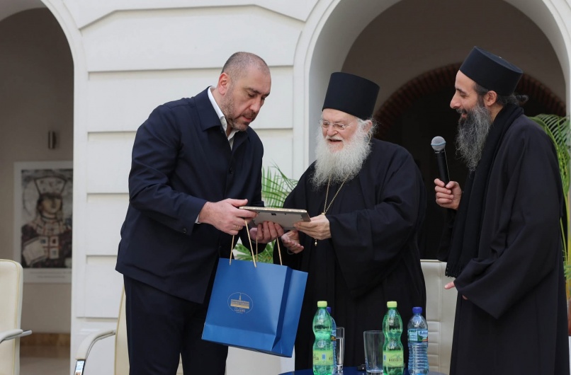 ΓΕΡΟΝΤΑΣ ΕΦΡΑΙΜ ΒΑΤΟΠΑΙΔΙΝΟΣ: Σε θερμό και συγκινητικό κλίμα πραγματοποιήθηκε η επίσημη επίσκεψη του Καθηγουμένου της Ιεράς Μεγίστης Μονής Βατοπαιδίου, Γέροντος Εφραίμ, στο Δημοτικό Συμβούλιο Τιφλίδας, κατόπιν προσκλήσεως του προέδρου του σώματος Ζουράμπ Αμπασιντζε.