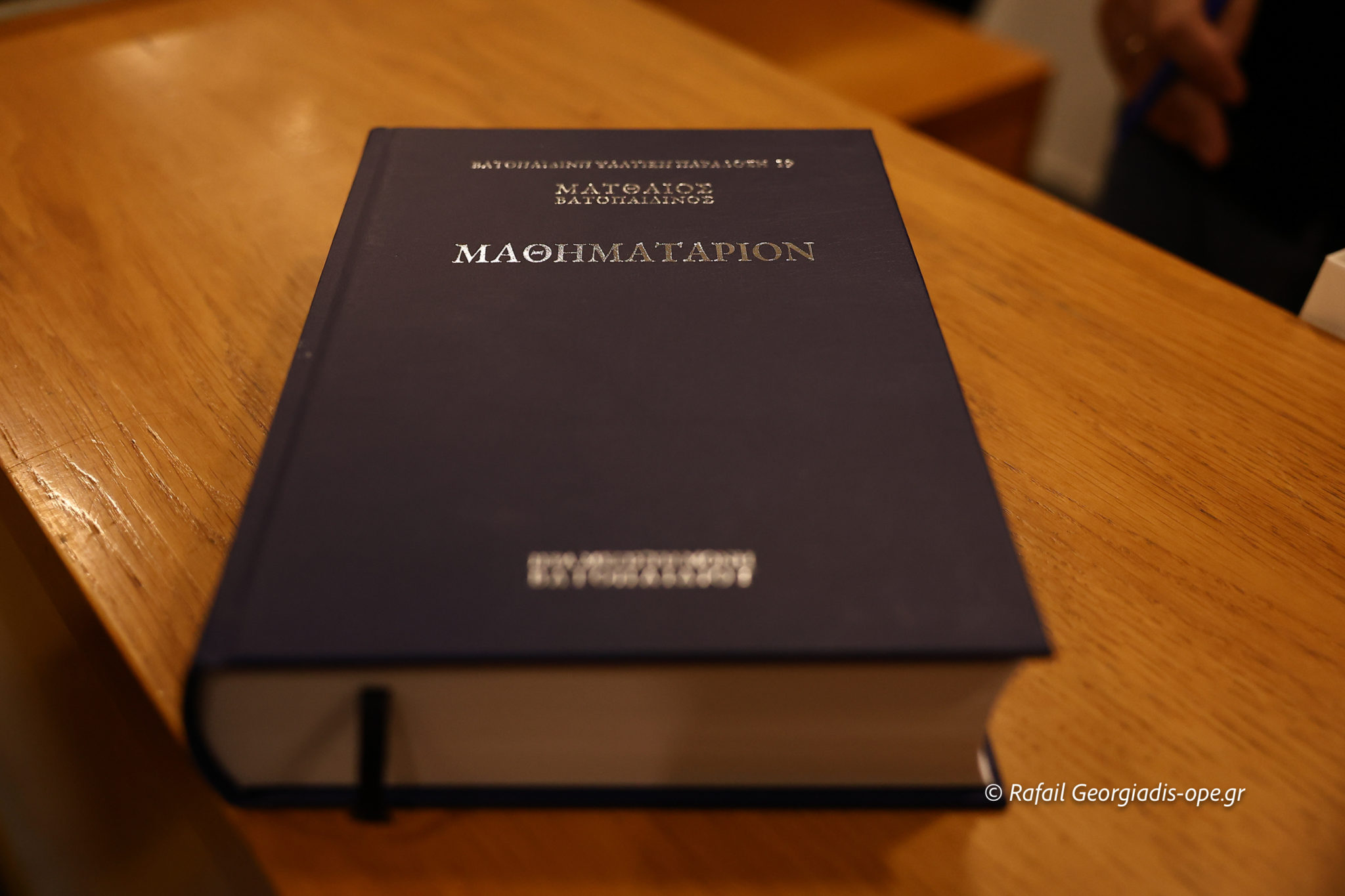 Θεσσαλονίκη: Σε μια ιδιαίτερα ζεστή και κατανυκτική ατμόσφαιρα πραγματοποιήθηκε το απόγευμα της Δευτέρας, 8 Δεκεμβρίου 2025, στο Συνεδριακό Κέντρο «Διακονία» του Ιδρύματος «Άγιος Γρηγόριος ο Παλαμάς» στη Θεσσαλονίκη, η παρουσίαση του “Μαθηματαρίου” του Μοναχού Ματθαίου του Βατοπαιδινού (1774–1849). Την εκδήλωση συνδιοργάνωσαν η Ιερά Μεγίστη Μονή Βατοπαιδίου και η Ιερά Μητρόπολη Θεσσαλονίκης.