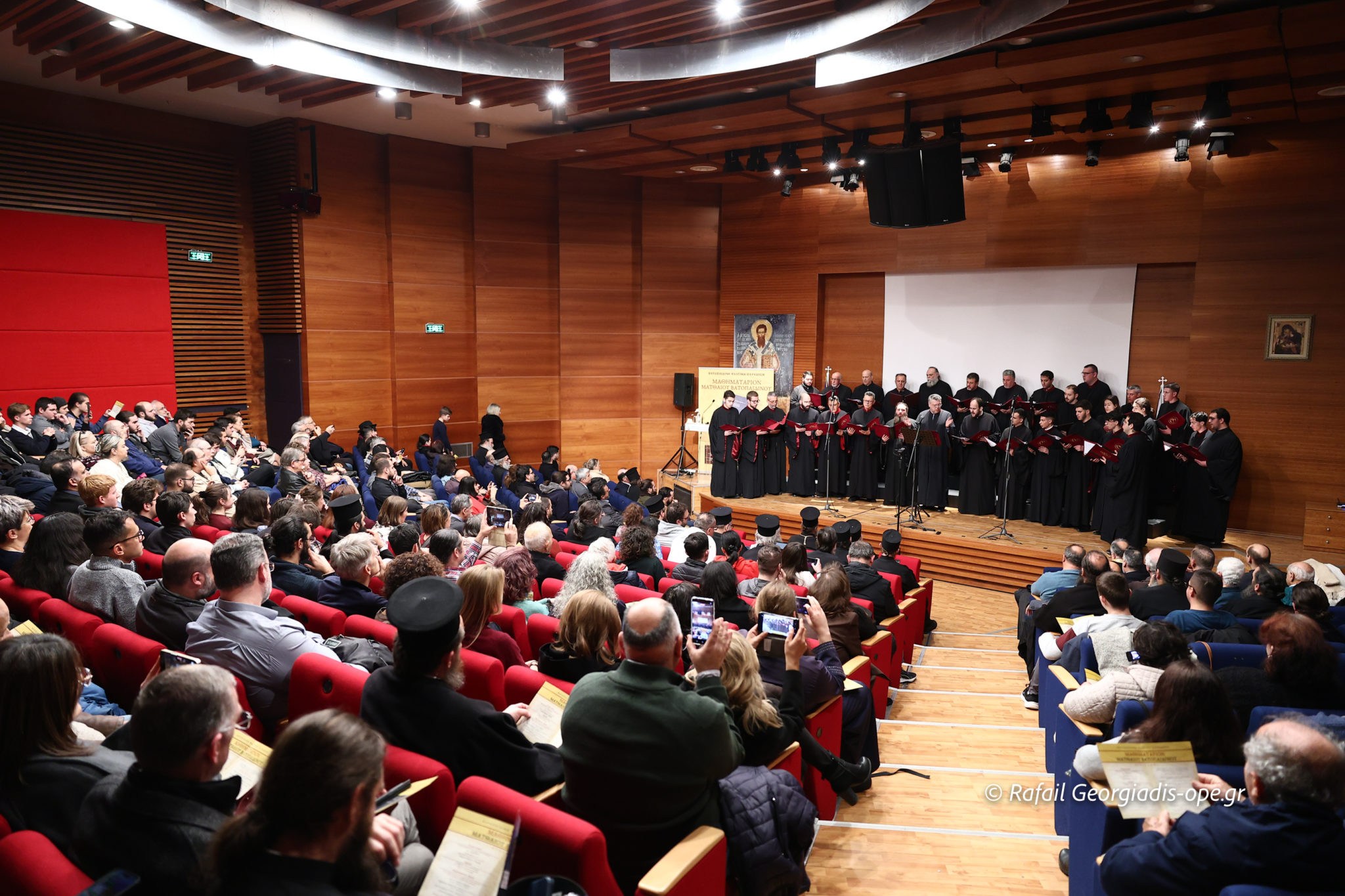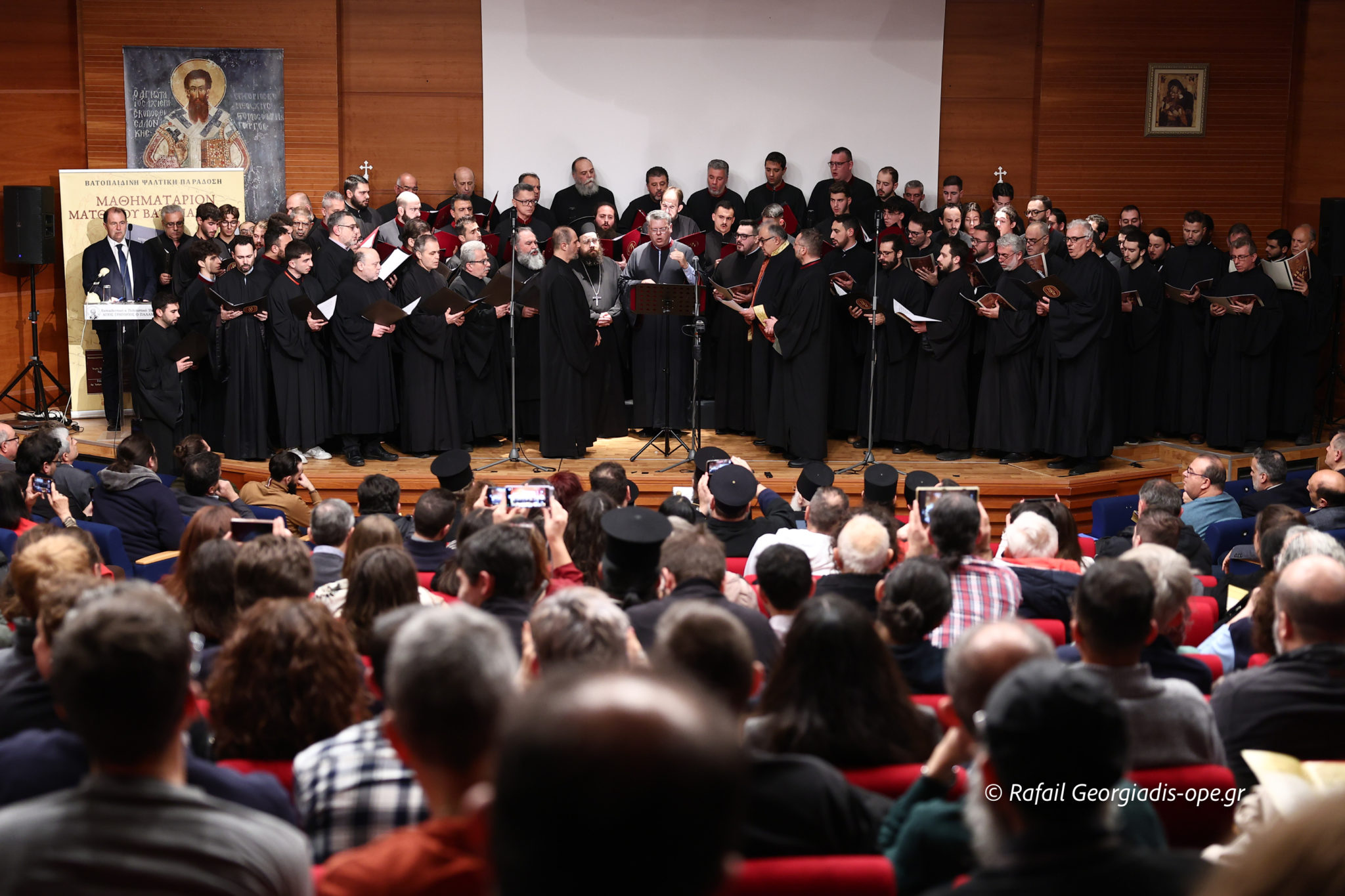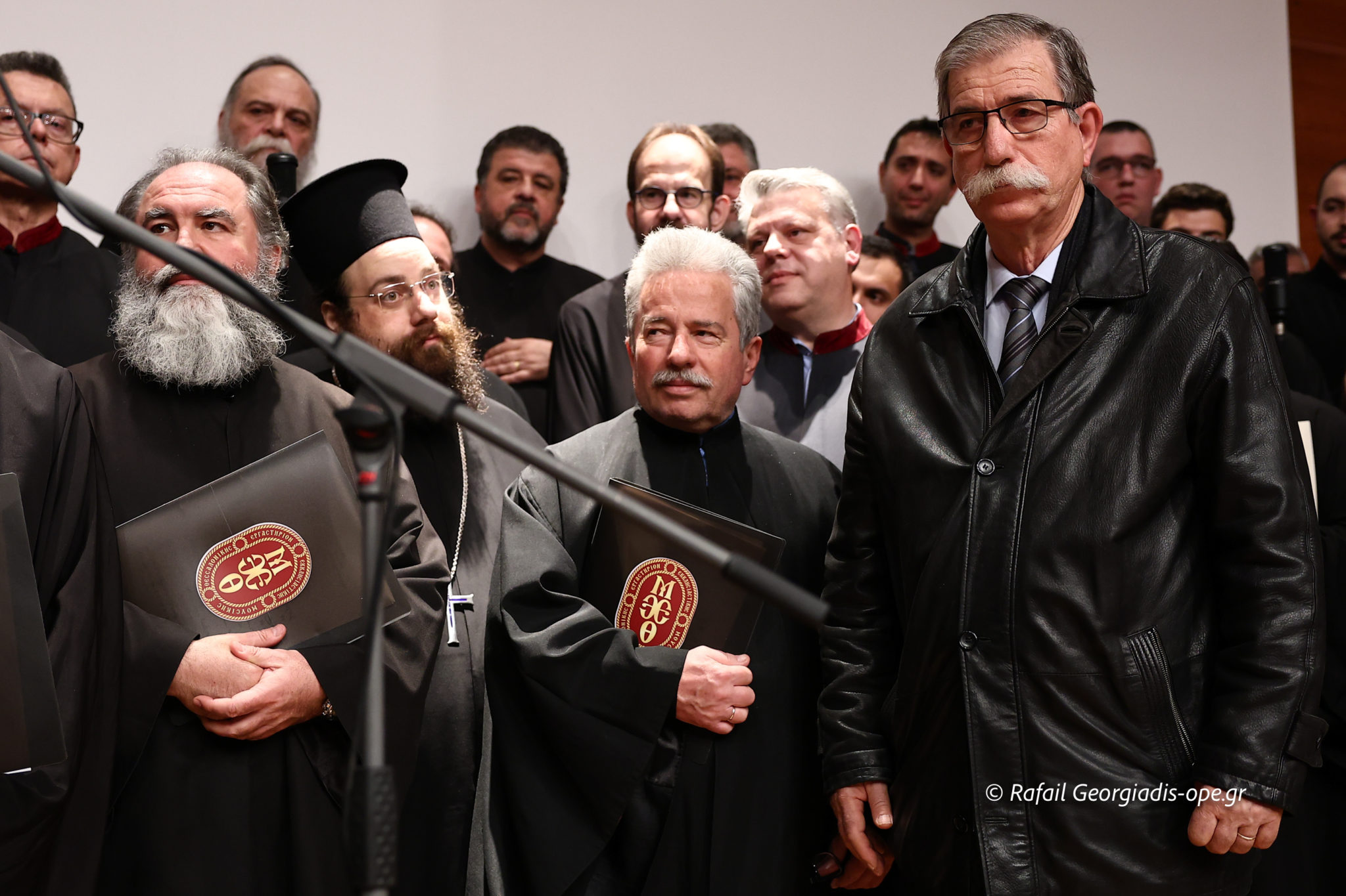 Η βραδιά πλαισιώθηκε μουσικά από χορωδιακές αποδόσεις ύμνων του Ματθαίου, που απέδωσαν με κατάνυξη και υψηλό καλλιτεχνικό επίπεδο οι χορωδίες: