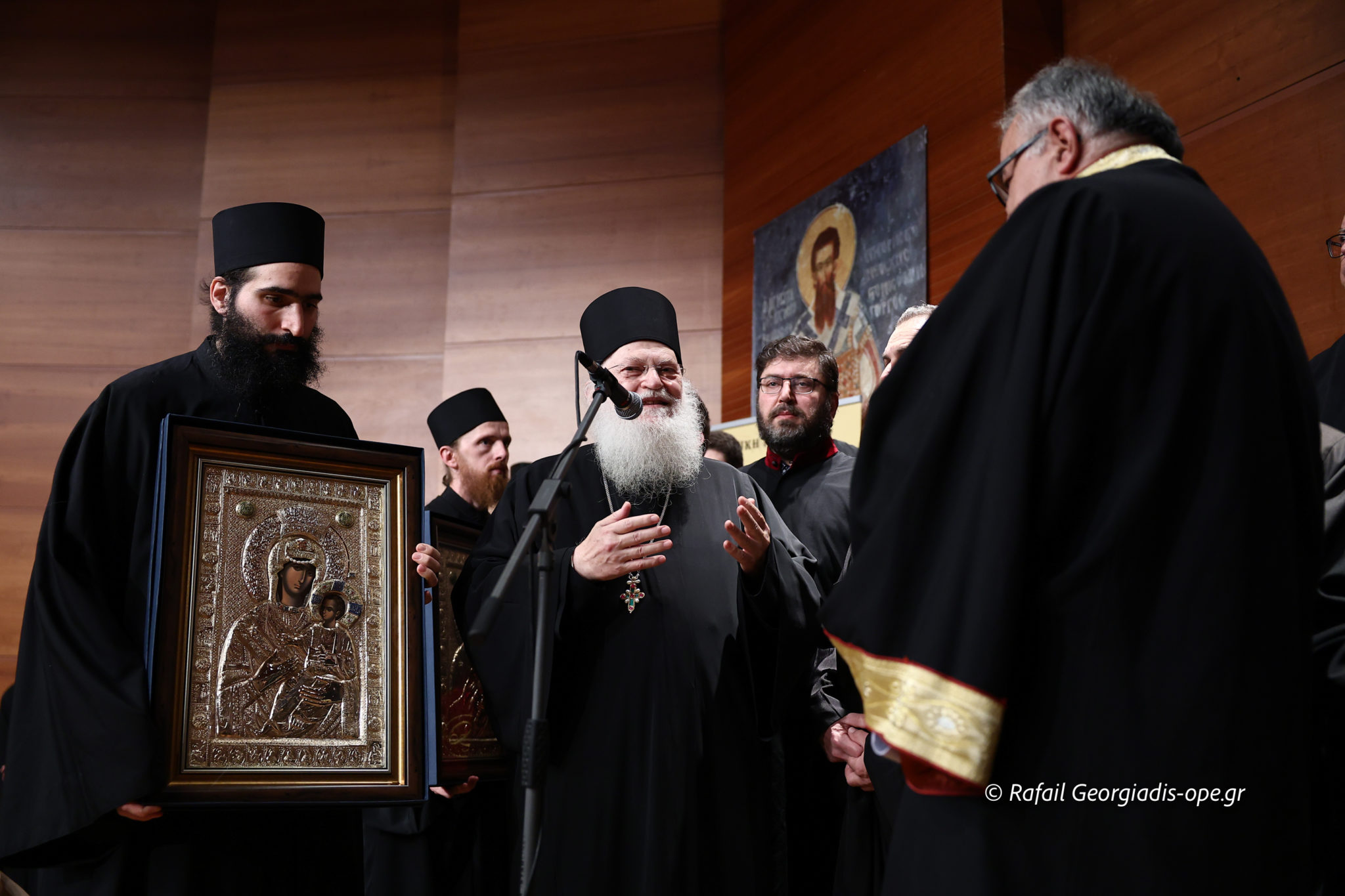 Πριν την λήξη της εκδήλωσης ο Καθηγούμενος της Ι. Μ. Μ. Βατοπαιδίου Γέροντας Εφραίμ προσέφερε από μια εικόνα της Παναγίας της Βημαραρίσσης στον κ. Αθανάσιο Βουγιουκλή, Άρχων Μαΐστωρ του Πατριαρχικού Θρόνου και στον Πρωτοψάλτη Ιωάννη Χασανίδη για την πολυετή τους προσφορά στα αναλογία της Εκκλησίας.