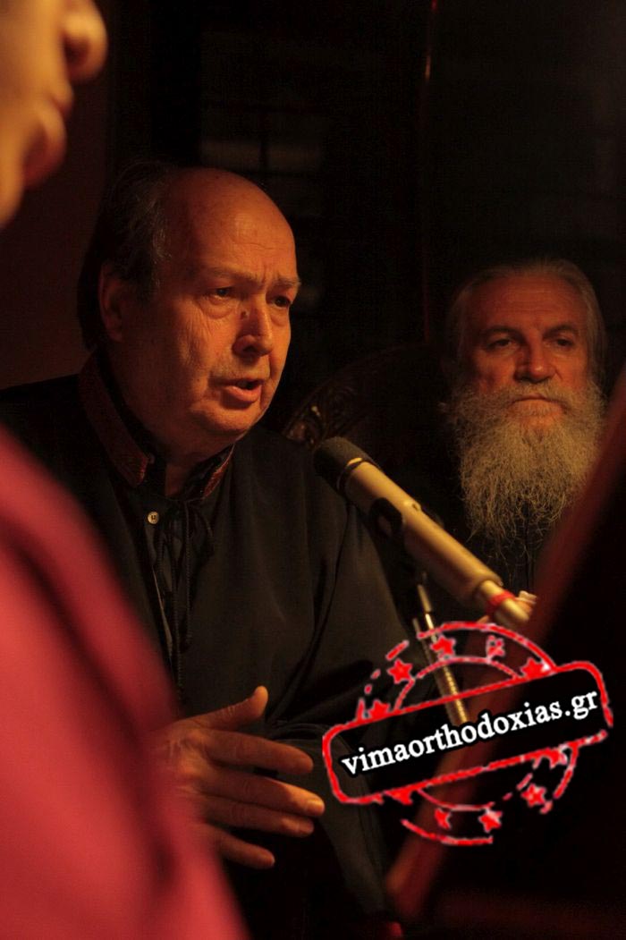 Κατά τη διάρκεια της Αγρυπνίας τέθηκε προς προσκύνηση η Κάρα του Αγίου Ευσταθίου που φυλάσσεται στο Ναό. Κατά τη διάρκεια της Θείας Λειτουργίας έψαλαν ο αιδεσιμολογιώτατος π.Χρήστος Κυριακόπουλο εξ Αθηνών και ο πρωτοψάλτης Εμμανουήλ Δασκαλάκης μετά πολυπληθούς μουσικής συνοδείας. Συμμετείχε δε πλήθος Χριστιανών φίλων αγαπητών οι οποίοι σέβονται τον αείμνηστο γέροντα Θωμά και ένωσαν την προσευχή τους υπέρ αναπαύσεως της ψυχής του. Κατά τη διάρκεια της Αγρυπνίας ομίλησε ο πατήρ Χρήστος Κυριακόπουλος και αναφέρθηκε στα βιογραφικά στοιχεία της ζωής του π.Θωμά με ιδιαίτερη μνεία στη μουσική του παρουσία στο Άγιον Ορός, στην Ελλάδα και στο εξωτερικό. Μετά το Μνημόσυνο έλαβε το λόγο ο γνωστός ποινικολόγος Αθανάσιος Κεχαγιόγλου, ο οποίο; αναφέρθηκε σε στιγμές που έζησε με τον π.Θωμά στο Αγιον Ορος ως εκλεκτός φίλος, προσκυνητής του Όρους και της συνοδείας των Θωμάδων. Στο τέλος, στην ώρα του Κοινωνικού, ομίλησε ο Αρχιερατικός Επίτροπος της Μητρόπολης Ιερισσού π.Ιγνάτιος Ριγανάς ο οποίος εξέφρασε την αγάπη, το σεβασμό και την εκτίμησή του προς τον π.Θωμά, στοιχεία που ένιωθε και όλο το εκκλησίασμα της ολονυκτίου Αγρυπνίας.