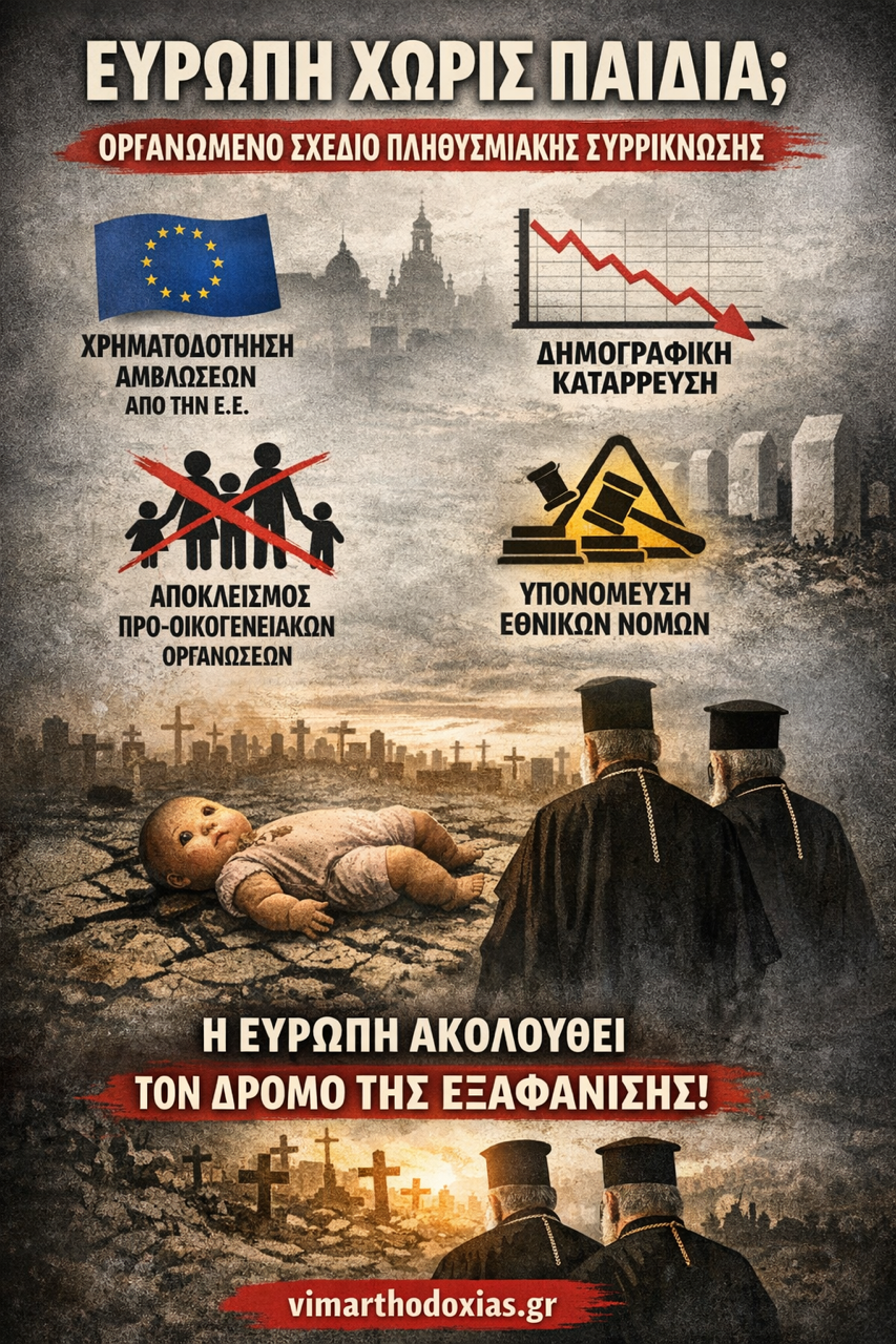 Στο Βήμα Ορθοδοξίας, ιεράρχες της Ελλαδικής Εκκλησίας υψώνουν έναν λόγο ασυνήθιστα αιχμηρό, προειδοποιώντας ότι η Ευρώπη οδηγείται συνειδητά σε πληθυσμιακή ερήμωση.