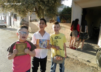 Τα παιδιά της ελληνορθόδοξης πόλης Al-Suqaylabiyah στην περιφέρεια της Χάμα γιόρτασαν με τον δικό τους παραδοσιακό τρόπο την Ανάσταση του...