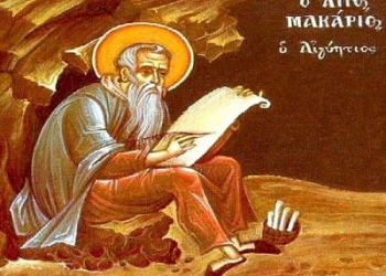 «Κάποτε, στην ώρα της προσευχής στο κελί του, ο μέγας Μακάριος άκουσε μια φωνή άνωθεν, να του λέγει: -Μακάριε, πρέπει...