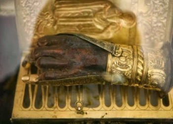 Το άφθαρτο αριστερό χέρι του Αγίου Χαραλάμπους σε στάση ευλογίας.Βρίσκεται στην Ιερά Μονή του Μεγάλου Σπηλαίου. H συνέχεια εδώ