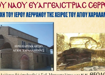 Την Κυριακή, 7 Φεβρουαρίου, στις 6:00 το απόγευμα, στο προαύλιο του Ιερού Ναού Ευαγγελιστρίας Σερρών, με προεξάρχοντα τον Σεβασμιώτατο Μητροπολίτη κ. Θεολόγο,...