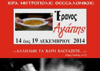 Εξόρμηση αγάπης θα πραγματοποιηθεί στην πόλη της Θεσσαλονίκης από 14 έως 19 Δεκεμβρίου. Το διάστημα αυτό θα πραγματοποιηθεί ο Ερανος...