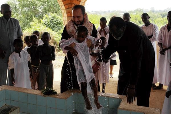 Το πρωί της 13ης Ιουνίου 2013, ο Θεοφιλέστατος Επίσκοπος Μπραζαβίλ και Γκαμπόν κ.Παντελεήμων αφίχθη στην πόλη του Dolisie, όπου ετέλεσε τις βαπτίσεις τριάντα ενός νεοφωτίστων όλων των ηλικιών, στο υπαίθριο βαπτιστήριο του Ιερού Ενοριακού Ναού Αγίας Ειρήνης.