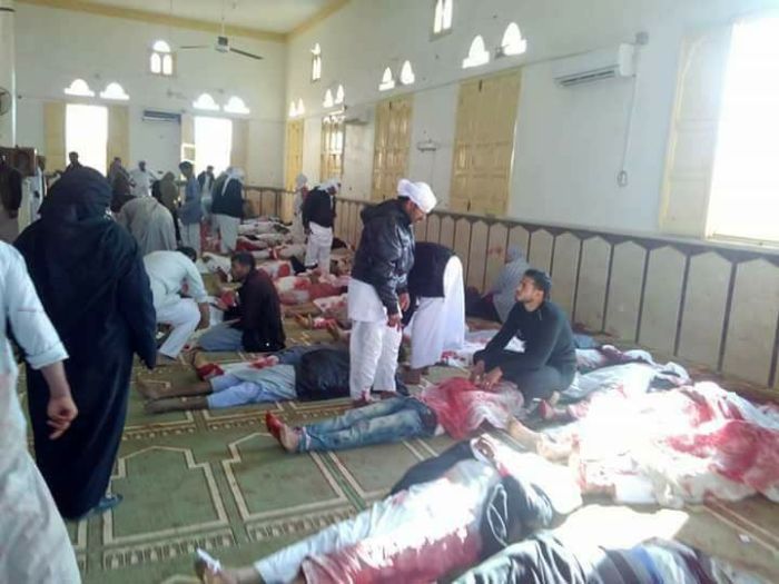 Εικόνες αποκάλυψης μεταδίδουν τα διεθνή πρακτορεία από την φονική έκρηξη και το πρωτοφανές μακελειό σε τέμενος στο Σινά της Αιγύπτου. Ο αριθμός των νεκρών στις 4.30 το μεσημέρι είχε φθάσει τους 185 αλλά αναμένεται να εκτοξευθεί ψηλότερα, καθώς οι τραυματίες ξεπερνούν τους 120 και πολλοί είναι σε εξαιρετικά σοβαρή κατάσταση.