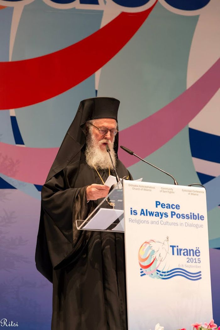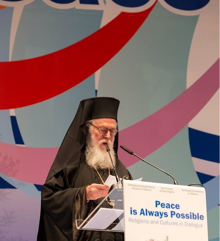 Αποτελεί ιδιαίτερη χαρά και τιμή για την Ορθόδοξο Αυτοκέφαλο Εκκλησία της Αλβανίας να είναι συνδιοργανώτρια της παρούσης 28ης Διεθνούς Συναντήσεως για την Ειρήνη , με την κοινότητα του Sant’ Egidio και τη Συνέλευση των Καθολικών Επισκόπων της Αλβανίας (Conference of Catholic Bishops of Albania).