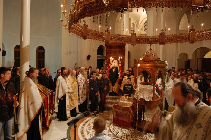 Της Πανηγυρικής Αρχιερατικής Θείας Λειτουργίας προέστη ο Σεβασμιώτατος Μητροπολίτης Λαγκαδά, Λητής και Ρεντίνης κ.κ. Ιωάννης, ο οποίος χοροστάτησε και εις τον Όρθρον, καθώς επίσης και της Ιεράς Λιτανεύσεως των Αγίων Εικόνων και των Ιερών Λειψάνων η οποία πραγματοποιήθηκε εντός του Ιερού Ναού, αναγνωσθέντος σε στάσεις τρεις του Συμβόλου της Πίστεως και του Συνοδικού της Ορθοδοξίας, εις τον Ιερό Μητροπολιτικό Ναό της Αγίας Παρασκευής Λαγκαδά.