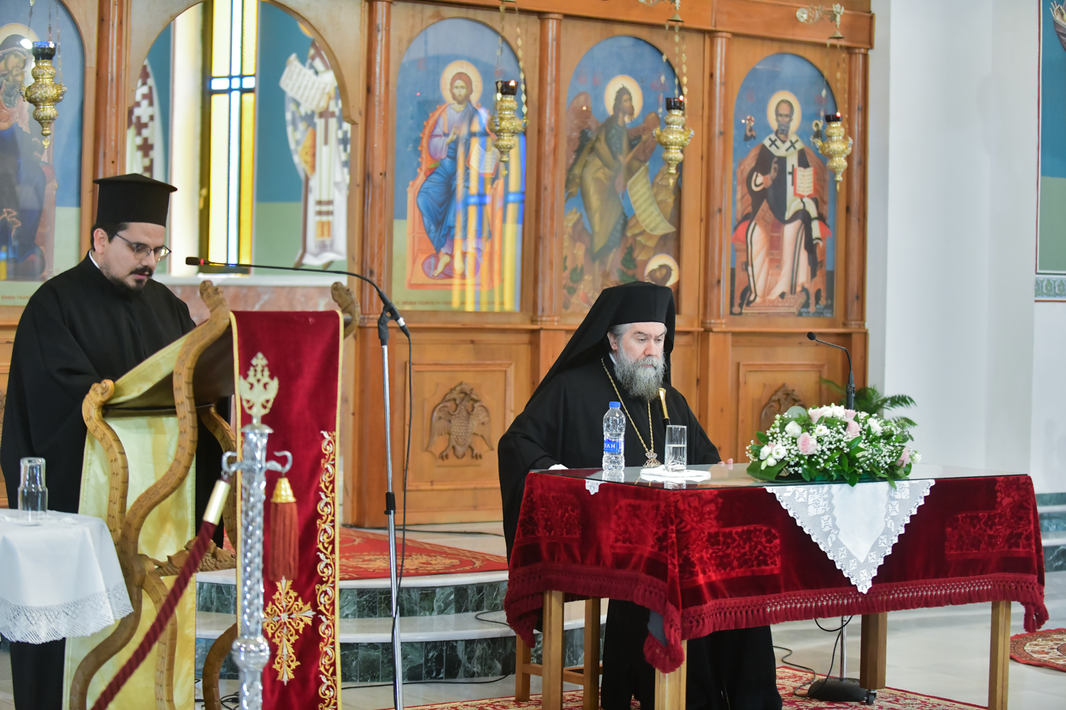 Η ημέρα ξεκίνησε με την τέλεση της Θείας Λειτουργίας, και μετά το πέρας της, οι παρευρισκόμενοι απόλαυσαν ένα κέρασμα σε φιλικό κλίμα. Ακολούθησε η ακολουθία του Αγιασμού, που τελέστηκε από τον Μητροπολίτη Θεολόγο, για να ευλογήσει τα στελέχη που θα αναλάβουν το κατηχητικό έργο της χρονιάς.