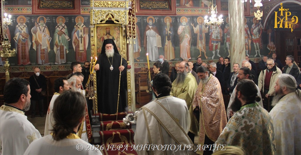 Μητροπολίτης Άρτης: Με κατάνυξη τελέστηκε, το απόγευμα του Σαββάτου 7 Μαρτίου 2026, ο Πανηγυρικός Εσπερινός επί τη μνήμη του Αγίου Γρηγορίου του Παλαμά, στον Ενοριακό Ιερό Ναό του Αγίου Γεωργίου, στην πόλη της Άρτας.
