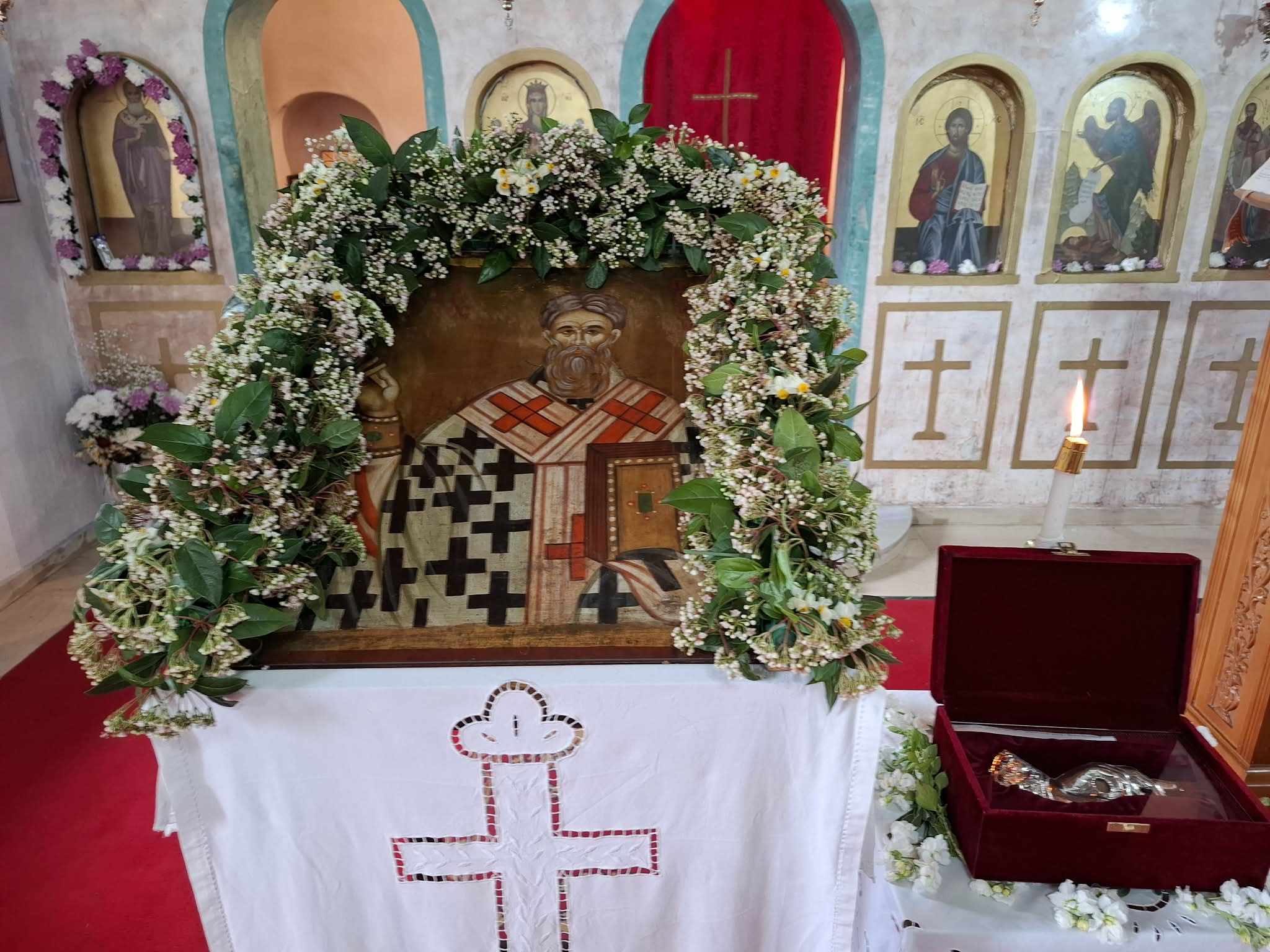 Με τον Μητροπολίτη κ. Σεραφείμ συλλειτούργησαν ο εφημέριος της ενορίας και Πρωτοσύγκελλος της Ιεράς Μητροπόλεως Πανοσ Αρχιμ π. Νικόδημος Πόγκας και οι Πανοσ Αρχιμ π. Νεκτάριος Καπενής π. Αντώνιος Αγγελόπουλος.