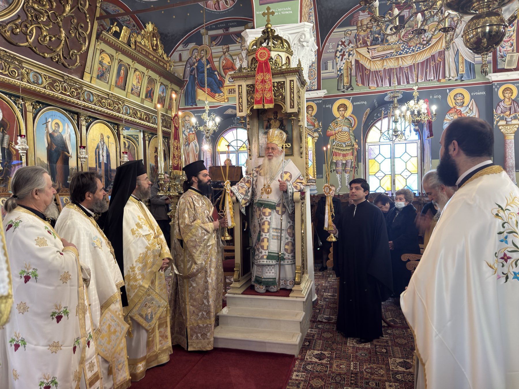 όπου στον Ιερό Ναό του Αγίου Αθανασίου της κωμοπόλεως τέλεσε τη Θεία Λειτουργία και το τρίμηνο μνημόσυνο της μακαριστής Αναστασίας, μητέρας του πανοσ. αρχιμ. π. Δαμασκηνού Μάκρα, Ιεροκήρυκα της Ιεράς Μητροπόλεως Χαλκίδος.