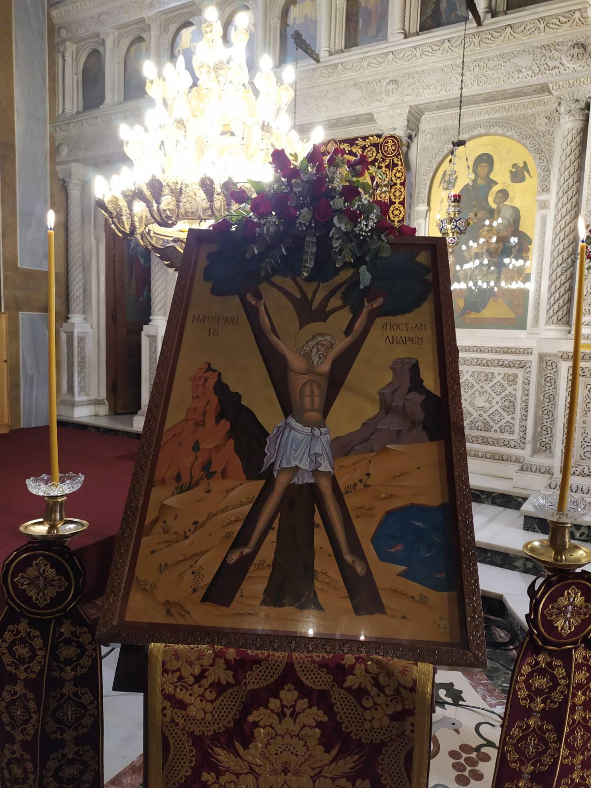 Πατρών Χρυσόστομος: Μέ τήν δέουσα τιμή καί εκκλησιαστική λαμπρότητα εορτάσθη η 41η επέτειος τής Επανακομιδής τού Σταυρού τού Αποστόλου Ανδρέου στήν Πάτρα, εκ τής πόλεως τής Μασσαλίας τής Γαλλίας όπου ευρίσκετο, (στήν Μονή τού Αγίου Βίκτωρος).
