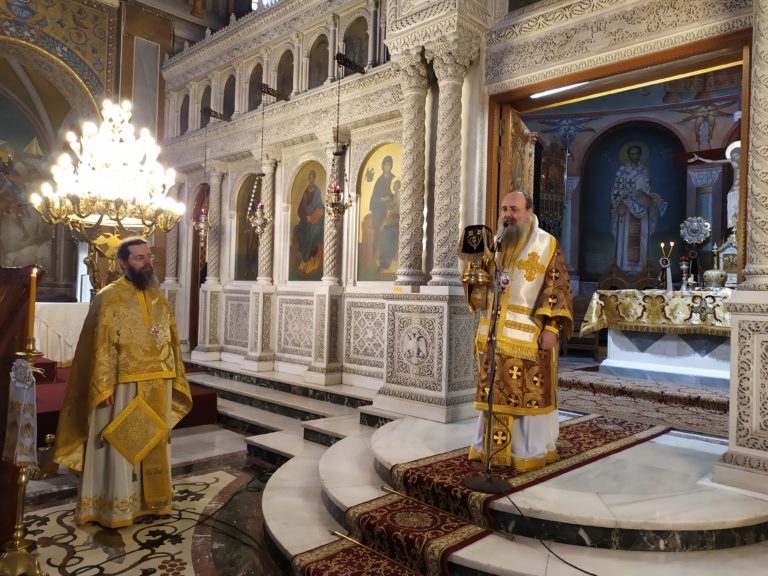 (κεκλεισμένων των θυρών, ενώ η Ιερά Ακολουθία μεταδόθηκε από τον Τηλεοπτικό Σταθμό της Ιεράς Μητροπόλεως «ΛΥΧΝΟΣ» και από τον ραδιοφωνικό Σταθμό της Ιεράς Μητροπόλεως «ΑΠΟΣΤΟΛΙΚΗ ΕΚΚΛΗΣΙΑ ΤΩΝ ΠΑΤΡΩΝ») και κήρυξε τον θείο λόγο αναφερθείς στο θέμα της αγάπης, όπως την δίδαξε η σαρκωμένη Αγάπη, δηλαδή ο Κύριός μας Ιησούς Χριστός.