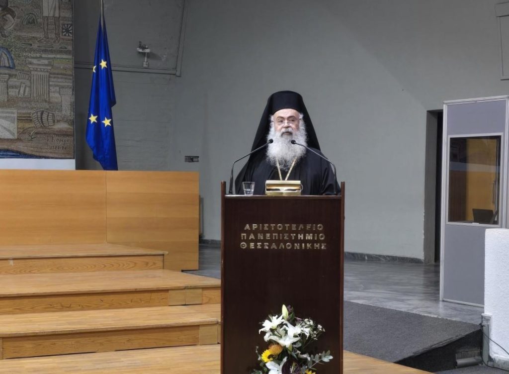 Με συγκινεί ιδιαίτερα το γεγονός ότι βρίσκομαι στη Θεσσαλονίκη, την αποστολοβάδιστη, την αγιοτόκο, την πόλη του του Αγίου Δημητρίου, των Αγίων Κυρίλλου και Μεθοδίου, του Αγίου Γρηγορίου του Παλαμά.