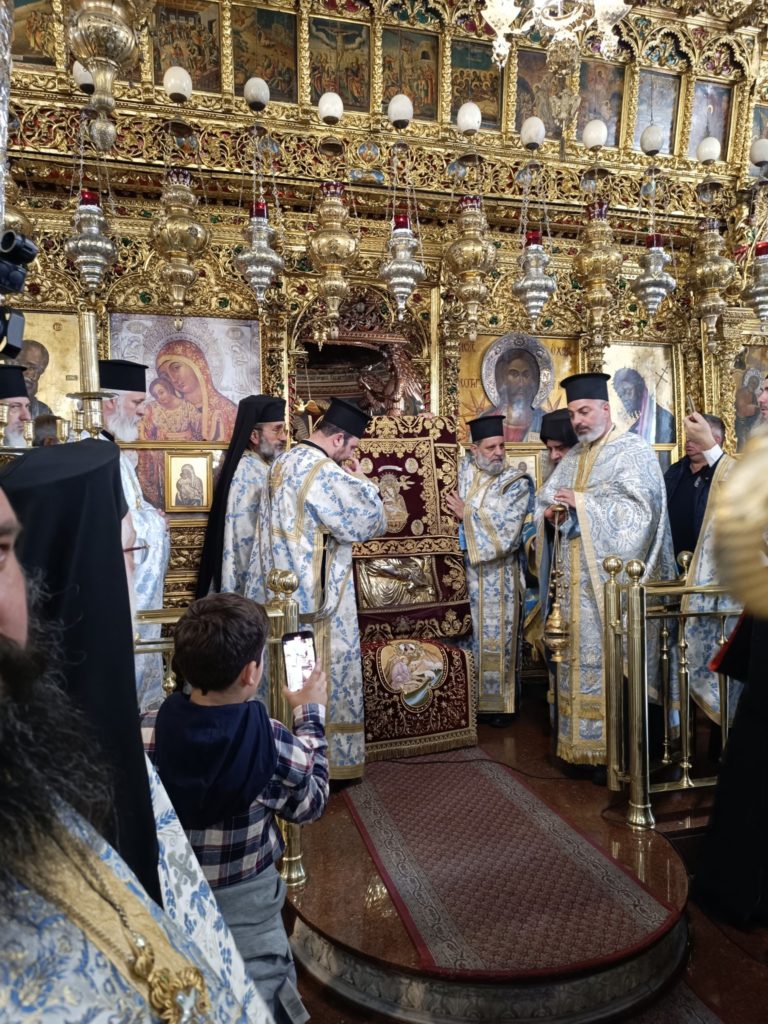 Η ολονύκτια Αγρυπνία, που τελέστηκε από τις 21 προς 22 Νοεμβρίου 2025, υπήρξε μια μοναδική πνευματική εμπειρία. Η ακολουθία ξεκίνησε στις 8 το βράδυ με τον Εσπερινό, συνεχίστηκε με τους Χαιρετισμούς, το Μεσονυκτικό και τον Όρθρο, ενώ κορυφώθηκε με τη Θεία Λειτουργία. Μετά το πέρας της θείας λατρείας, πραγματοποιήθηκε η έξοδος και η λιτανευτική πορεία της θαυματουργού Εικόνας της Ελεούσας, η οποία μεταφέρθηκε με δέος προς το ιστορικό Θρονί, συνοδευόμενη από νυχθημερόν προσευχές και δεήσεις.