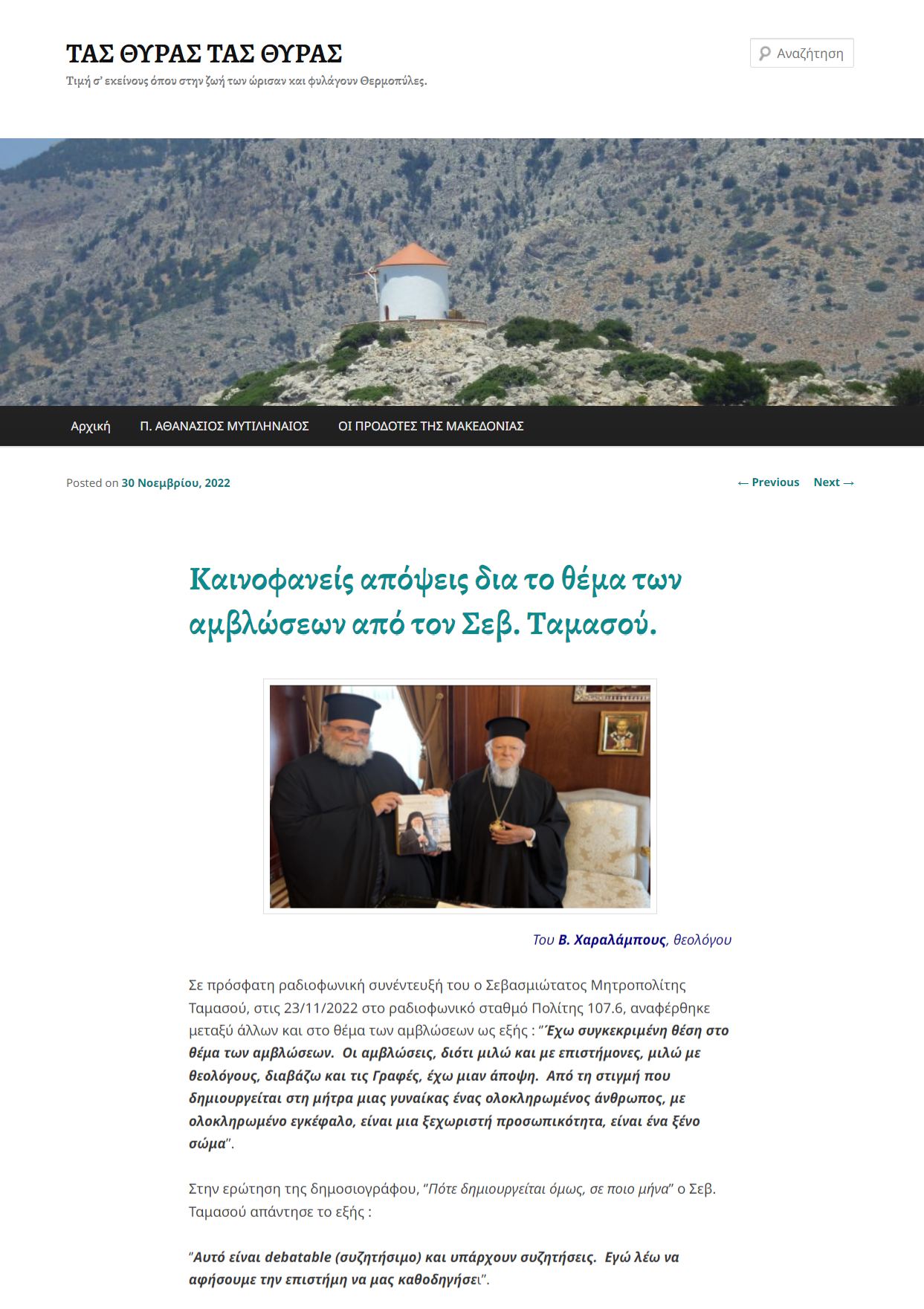 Μέχρι προ ολίγων μηνών, δεν έβρισκες τίποτε αρνητικό για τον Πανιερώτατο Μητροπολίτη Ταμασού και Ορεινής κ. Ησαΐα στα γνωστά ιστολόγια και λοιπές ιστοσελίδες των ταλιμπάν πρακτόρων της ανίερης Μοσχοβίας στην Ελλάδα, των ελεεινών και τρισάθλιων γενίτσαρων και υβριστών της Μεγάλης Εκκλησίας και του Μεγάλου Οικουμενικού Πατριάρχου Βαρθολομαίου.