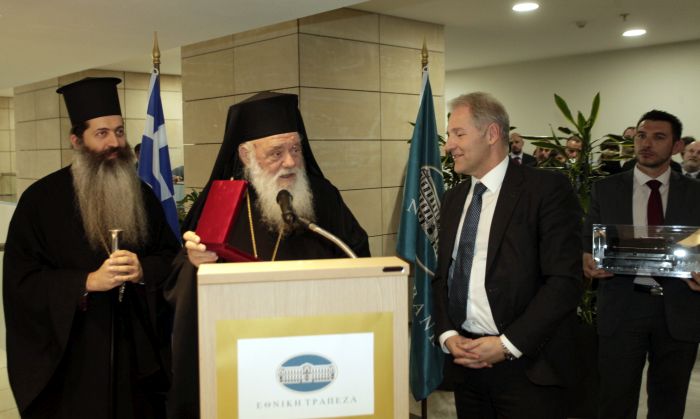 Τον Αρχιεπίσκοπο συνόδευε ο Πρωτοσύγκελλος της Αρχιεπισκοπής Αρχιμανδρίτης Συμεών Βολιώτης, ενώ τους υποδέχθηκαν ο Πρόεδρος του Δ.Σ. της Εθνικής Τράπεζας κ. Παναγιώτης Θωμόπουλος, ο Διευθύνων Σύμβουλος κ. Λεωνίδας Φραγκιαδάκης, ο Γενικός Διευθυντής κ. Νικόλαος Χριστοδούλου, αλλά και όλα τα διοικητικά στελέχη.