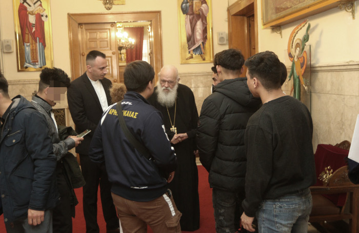 ΑΡΧΙΕΠΙΣΚΟΠΗ ΑΘΗΝΩΝ: Αντιπροσωπεία από τα ασυνόδευτα ανήλικα προσφυγόπουλα που φιλοξενούνται από την «Συνύπαρξις» της Εκκλησίας της Ελλάδος επισκέφθηκαν σήμερα το μεσημέρι τον Αρχιεπίσκοπο Αθηνών και πάσης Ελλάδος κ. Ιερώνυμο για να του ευχηθούν με αφορμή την επέτειο 15 ετών στον Αρχιεπισκοπικό θρόνο και στο πηδάλιο της Εκκλησίας της Ελλάδος.