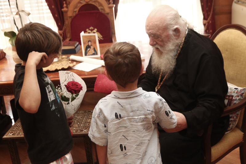 Νωρίτερα για ευχές επισκέφθηκαν τον Αρχιεπίσκοπο παιδιά που φιλοξενούνται στο Εκκλησιαστικό Ορφανοτροφείο Βουλιαγμένης συνοδευόμενα από φροντιστές του Ορφανοτροφείου.