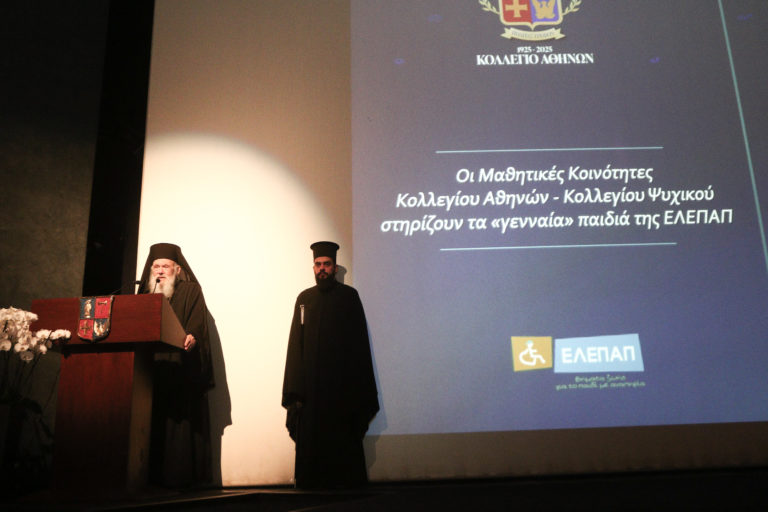 Ιερώνυμος: Σε μια εκδήλωση με έντονο συμβολισμό και βαθιά κοινωνική αξία, ο Αρχιεπίσκοπος Αθηνών και πάσης Ελλάδος Ιερώνυμος Β΄ έστειλε ηχηρό μήνυμα αλληλεγγύης και προσφοράς, κατά τη διάρκεια της δράσης στήριξης των «γενναίων παιδιών» της ΕΛΕΠΑΠ, που πραγματοποιήθηκε στο Θέατρο του Κολλεγίου Αθηνών στο Ψυχικό.